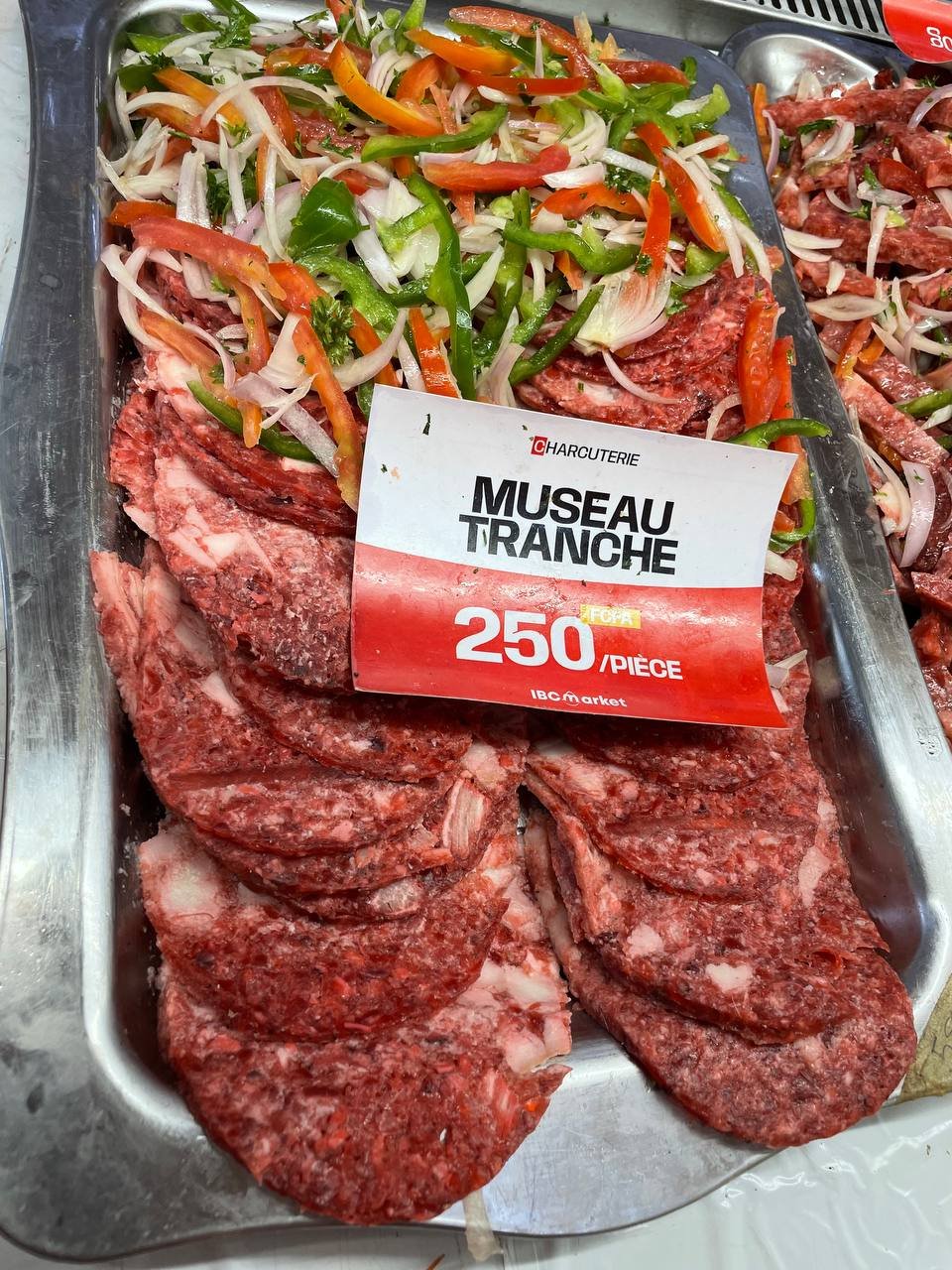 Tranche de museau prête à déguster, parfaite en salade ou en accompagnement léger.